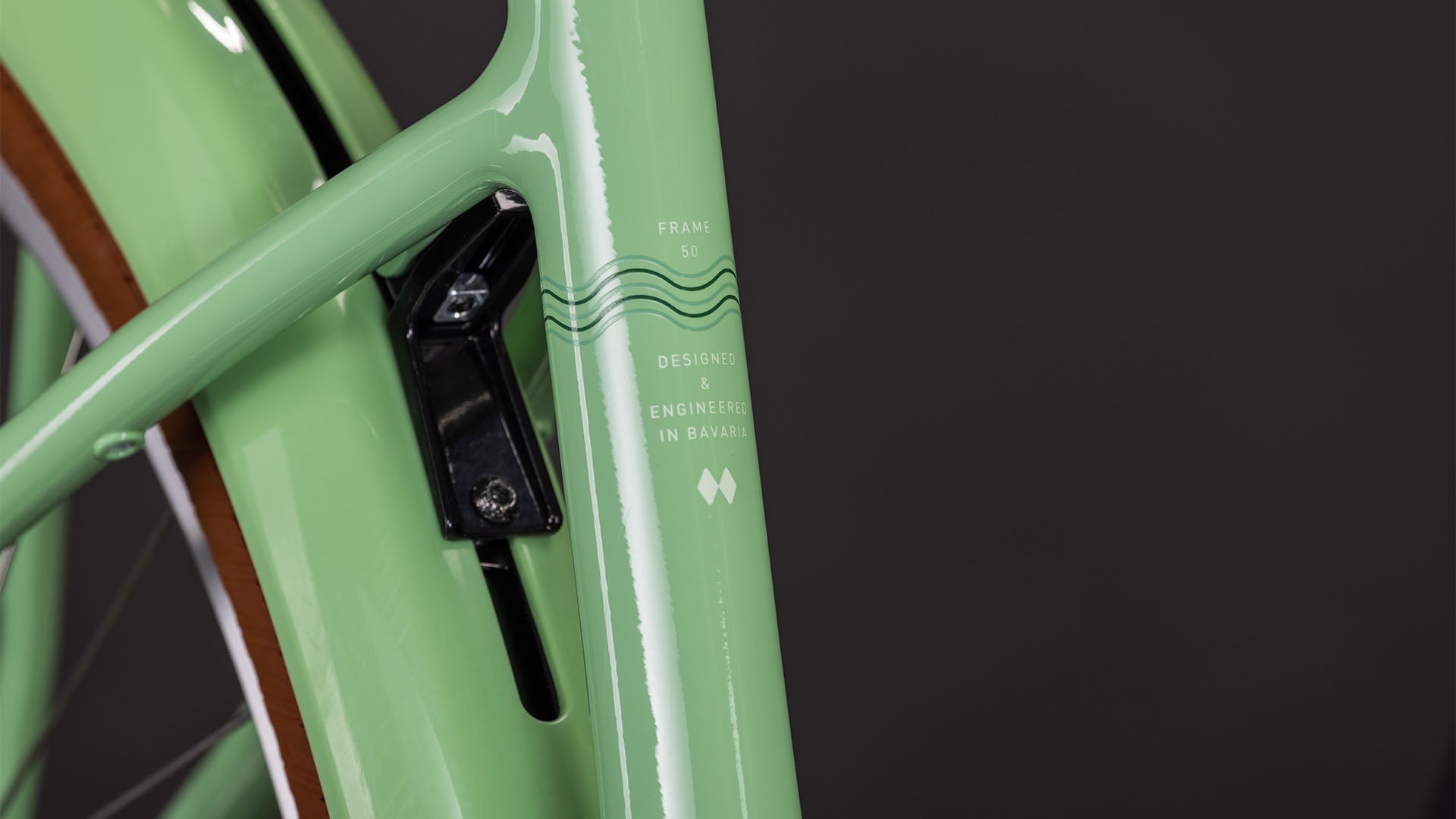 Stilren og elegant er den uten tvil – men Aruba Hybrid er også full av smarte detaljer. Vår PowerTube-design integrerer det 600Wh Bosch-batteriet i rammen, slik at du får mange bekymringsfrie mil på sykkelen. Den elegante finishen kompletteres med vår Smooth Welding-teknologi, som gir rammen myke, organiske linjer. Vi har valgt et 1,5” styrerør fordi det er sterkt, sikkert og gir bedre styrepresisjon for en intuitiv og enkel håndtering. Sykkelen leveres med et semi-integrert bagasjebrett, og Easy Entry er akkurat det navnet lover: enkel tilgang for alle syklister. Og ja – alt er fargekoordinert, naturligvis.