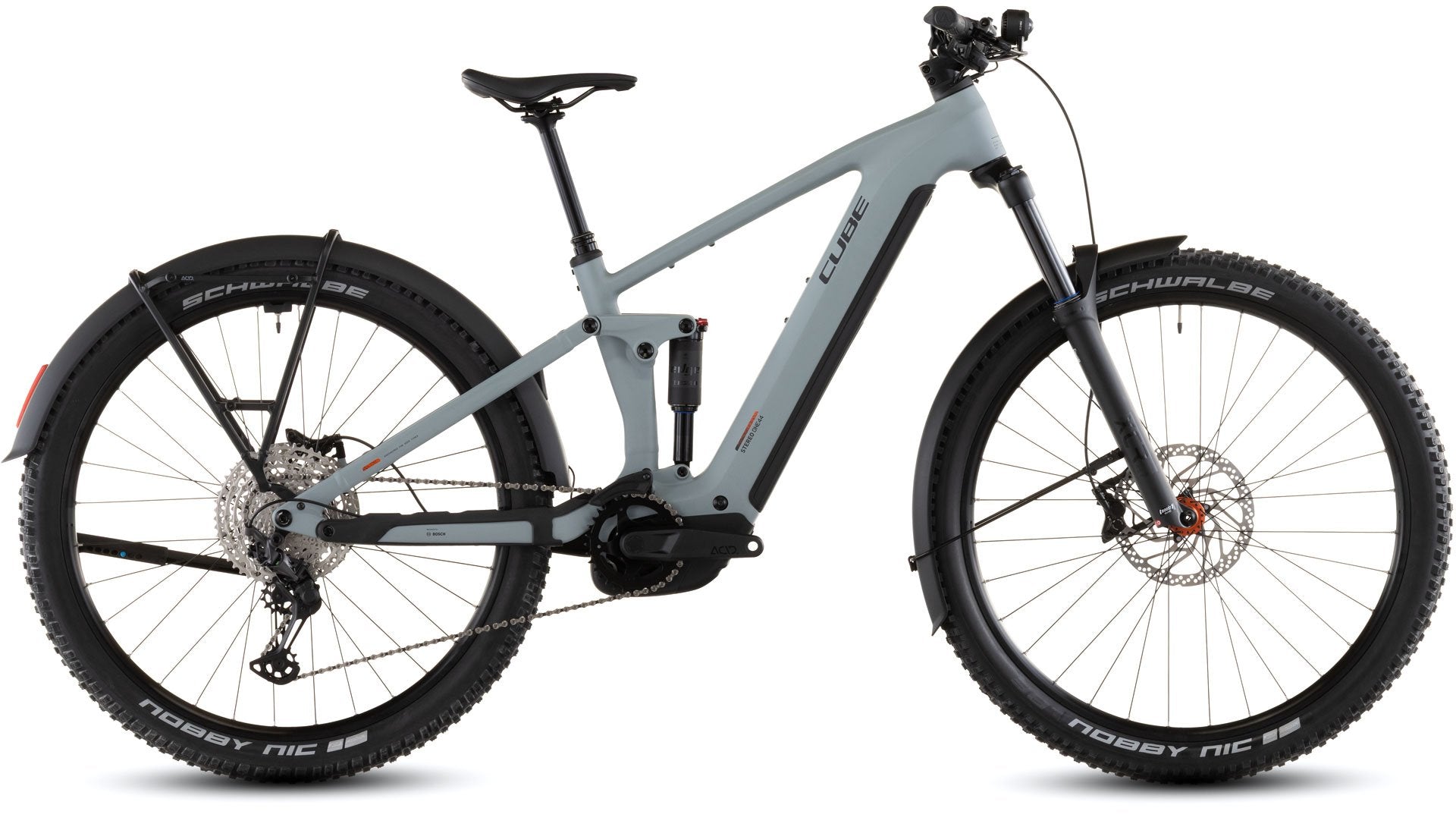 Har du noen gang ønsket deg én sykkel som kan gjøre alt? Stereo Hybrid ONE44 Pro 800 FE gjør drømmen til virkelighet. Den kombinerer terrengegenskapene til en fulldemper med utstyrslisten til en tursykkel, slik at du kan sykle til jobb i hverdagen eller legge ut på langtur i helgen. Eller begge deler. Med 140 mm luftdempet Suntour-fjæring foran og bak, kraftige 4-stemplers Shimano hydrauliske skivebremser og gripevillige Schwalbe 2,6” dekk, er den klar for alt. Bosch sin jevne og kraftige CX-motor med 800Wh batteri leverer opptil 100 Nm assistanse via Shimanos legendarisk pålitelige XT 1x12-gir. Skjermer, et semi-integrert bagasjebrett og lyssett gir deg alt du trenger for enhver tur på to hjul.