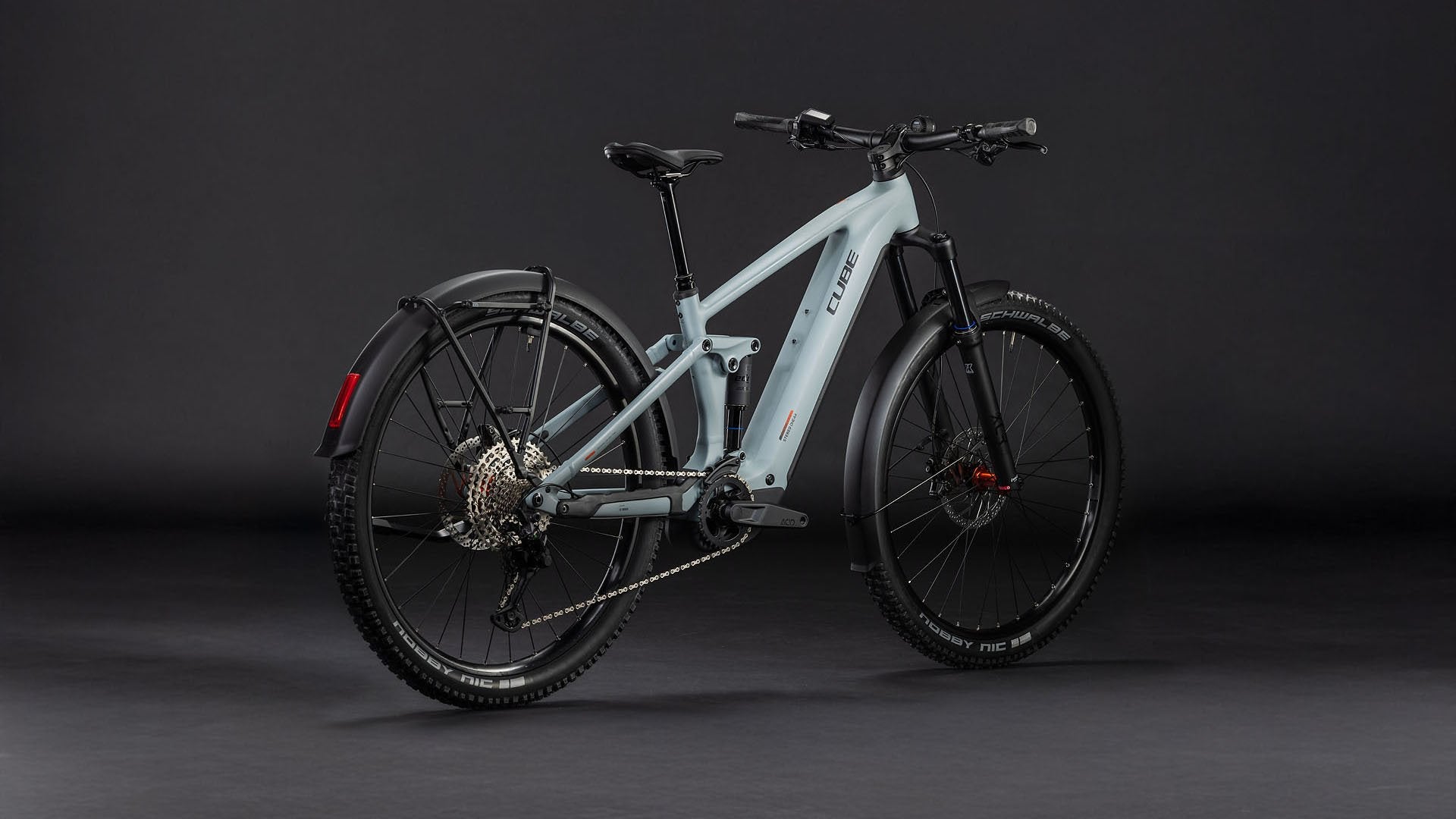 At Stereo Hybrid ONE44 FE leveres med skjermer, semi-integrert bagasjebrett og lyssett viser tydelig hvor allsidig og praktisk den er – men tilbehøret er bare én del av historien. Med sitt kompakte 800Wh PowerTube-batteri og kraftige Bosch CX-motor med opptil 100 Nm assistanse, får du 140 mm vandring foran og bak for trygg terrengsykling og høy ytelse. Intern kabelføring fremhever rammens rene, organiske linjer, mens UDH-girfestet er fremtidsrettet og Direct Mount-kjedebeskytteren både elegant og diskret. Og med Size Split finnes det en ramme som passer nesten alle syklister.